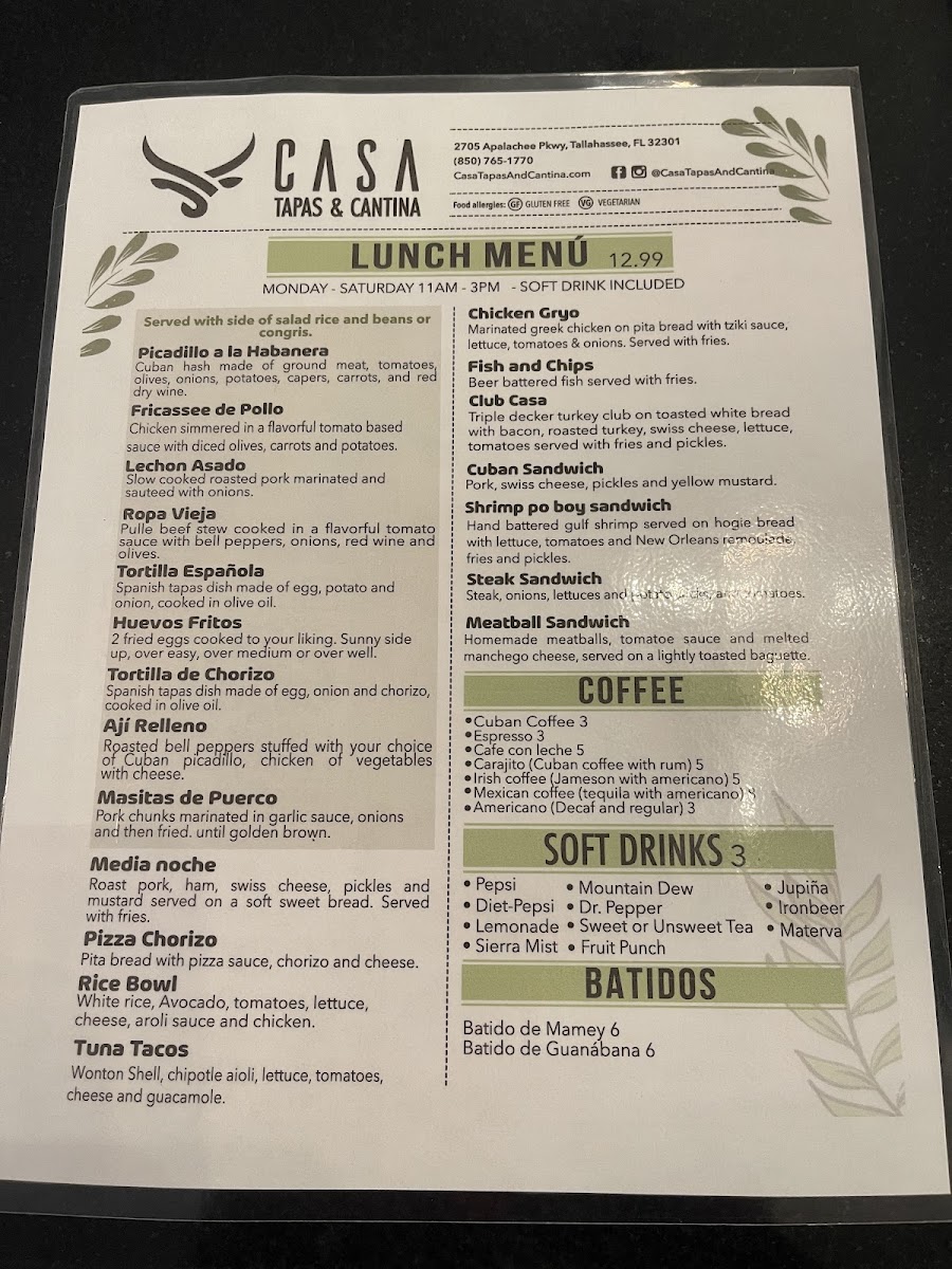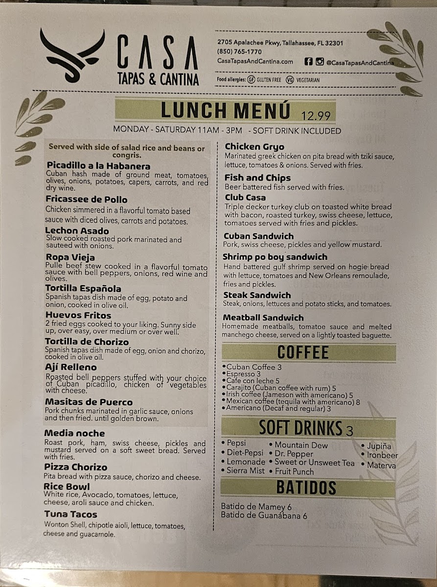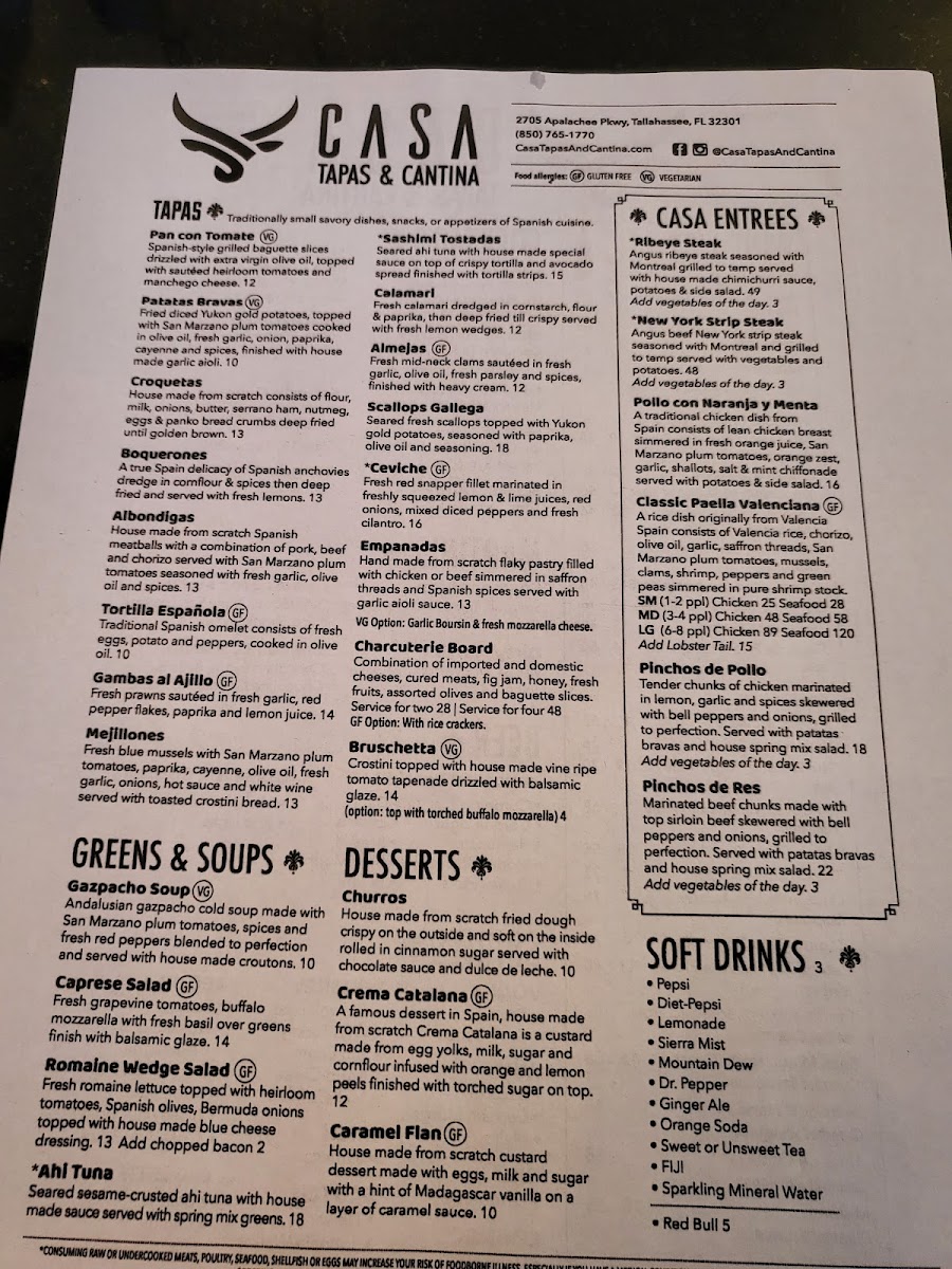 Introducing the menu at Casa Tapas & Cantina, a delightful haven for culinary enthusiasts in Tallahassee, FL. This vibrant eatery offers an extensive selection of mouthwatering tapas that blend traditional flavors with a modern flair. Each dish showcases fresh ingredients and exquisite preparation, making every bite a delightful experience.